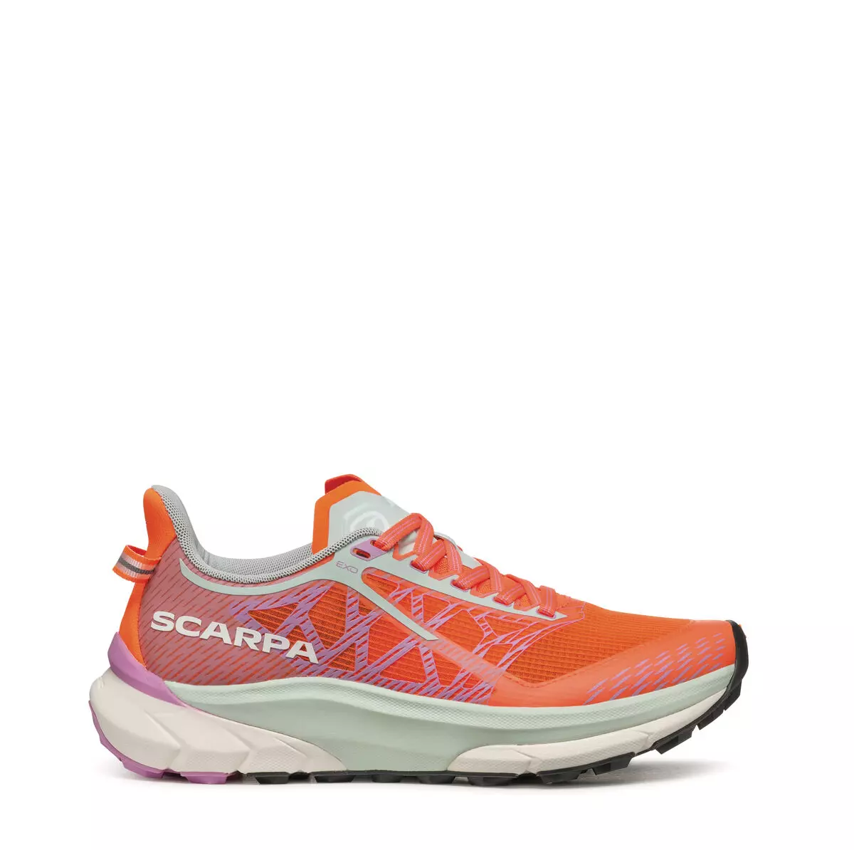 Горната част е изработена от издръжлива и дишаща мрежа, подсилена с 3D принтирани елементи за допълнителна стабилност. Конструкцията Sock-Fit LW на SCARPA обгръща стъпалото като чорап, елиминирайки точките на натиск и осигурявайки прецизно и удобно прилягане. Езикът е изработен от лека, проветрива материя, но запазва класическата форма на обувката.