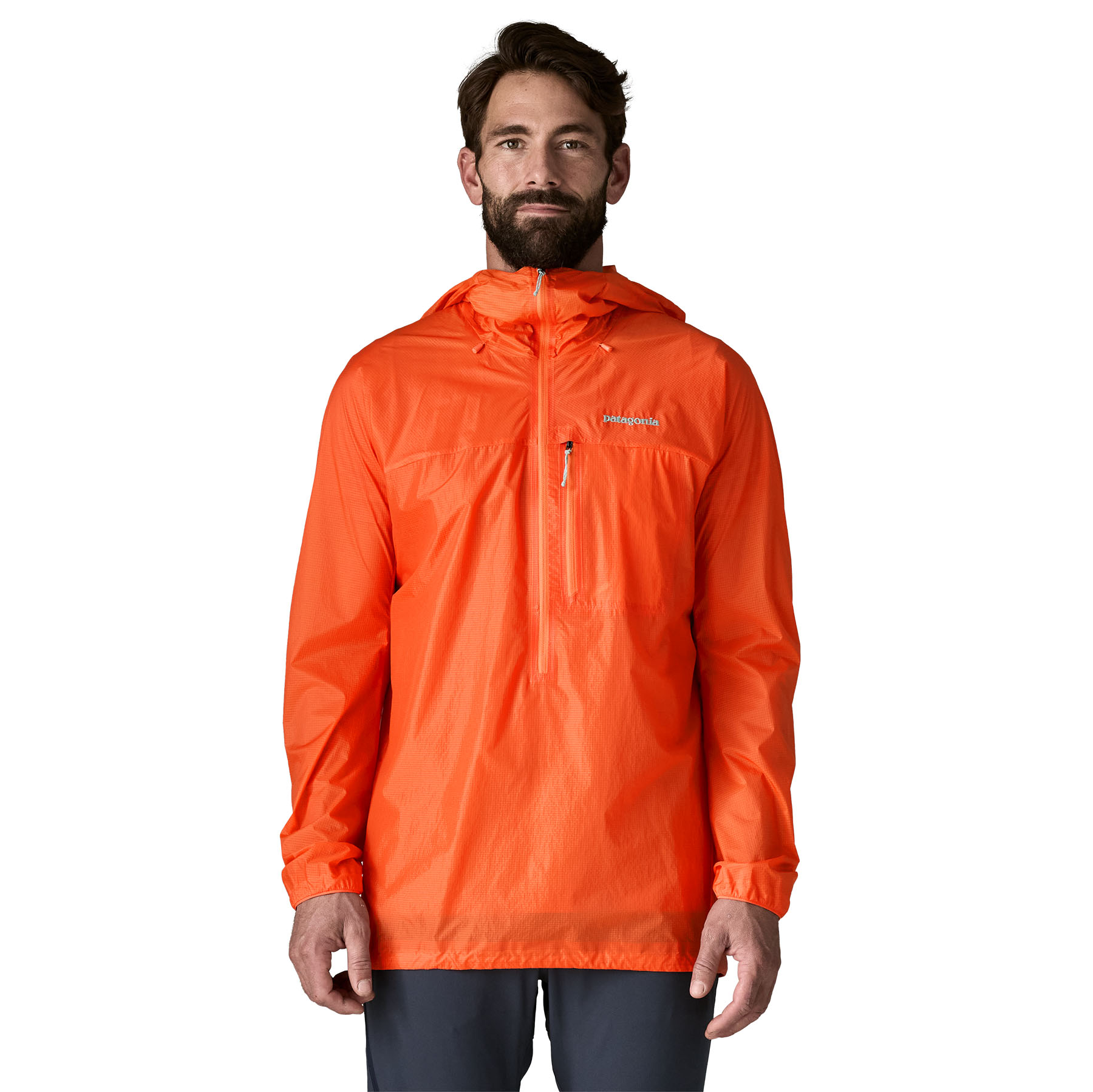 Houdini Rock Jacket на Patagonia е проектирана за катерачи, търсещи ултралека защита от вятър и влага. Изработена е от 100% рециклиран найлон рипстоп, обработен с трайно водоотблъскващо (DWR) покритие без умишлено добавени PFAS, което устоява на леко намокряне, без да компрометира представянето.
