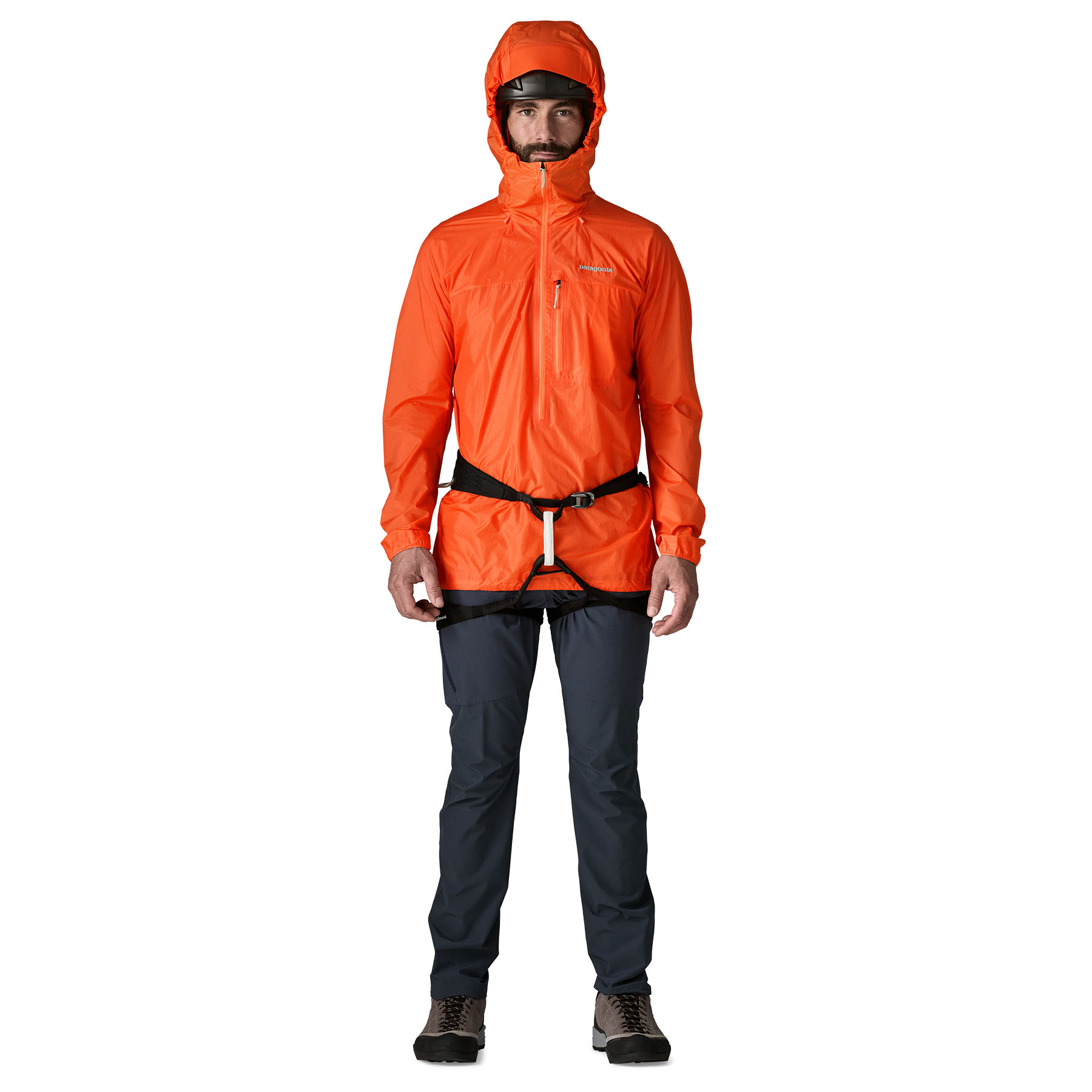 Качулка съвместима с каска и лесно сваляне – регулируема в две посоки, може да се сложи или свали с една ръка, дори когато якето е напълно закопчано. Тясната, катераческа кройка осигурява допълнително пространство в раменете за свобода на движение над главата, а дългият централен цип позволява лесно обличане и събличане или бързо проветряване при интензивно катерене.